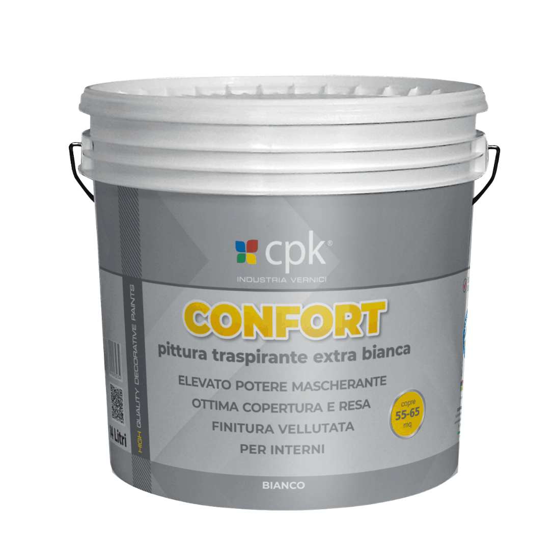 CONFORT è un’idropittura murale traspirante in dispersione acquosa, studiata per la finitura di interni di pregio. Il prodotto garantisce un’elevata resa e forma un film con aspetto vellutato, con ottimo punto di bianco e ottima capacità mascherante delle imperfezioni del supporto.